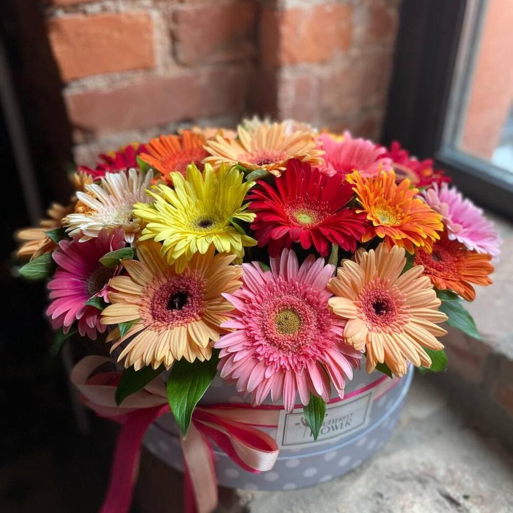 Букет из 25 гербер в шляпной коробке