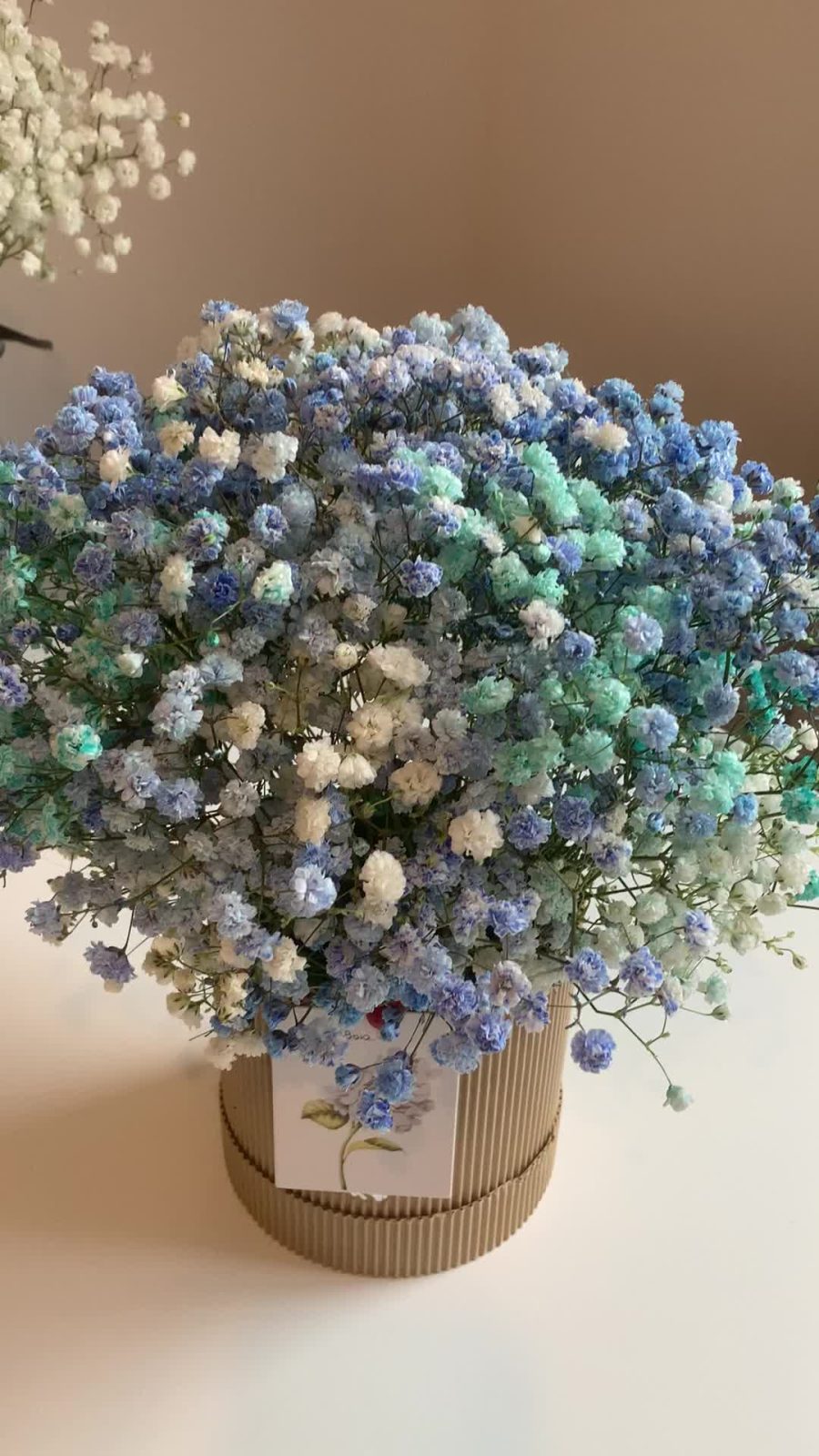 Голубое облачко гипсофилы в шляпной коробке