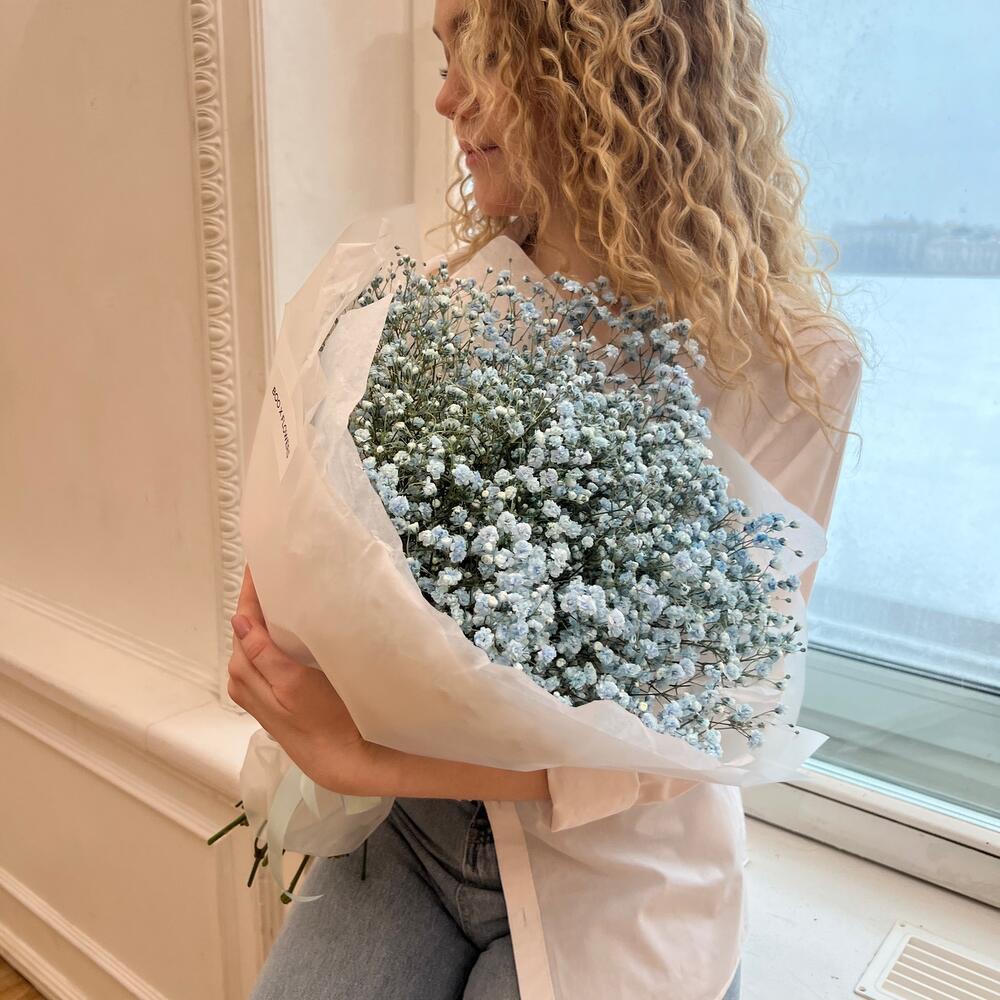 Гипсофила – 7 шт.Дизайнерская упаковка – 1 шт.Лента атласная – 1 шт.