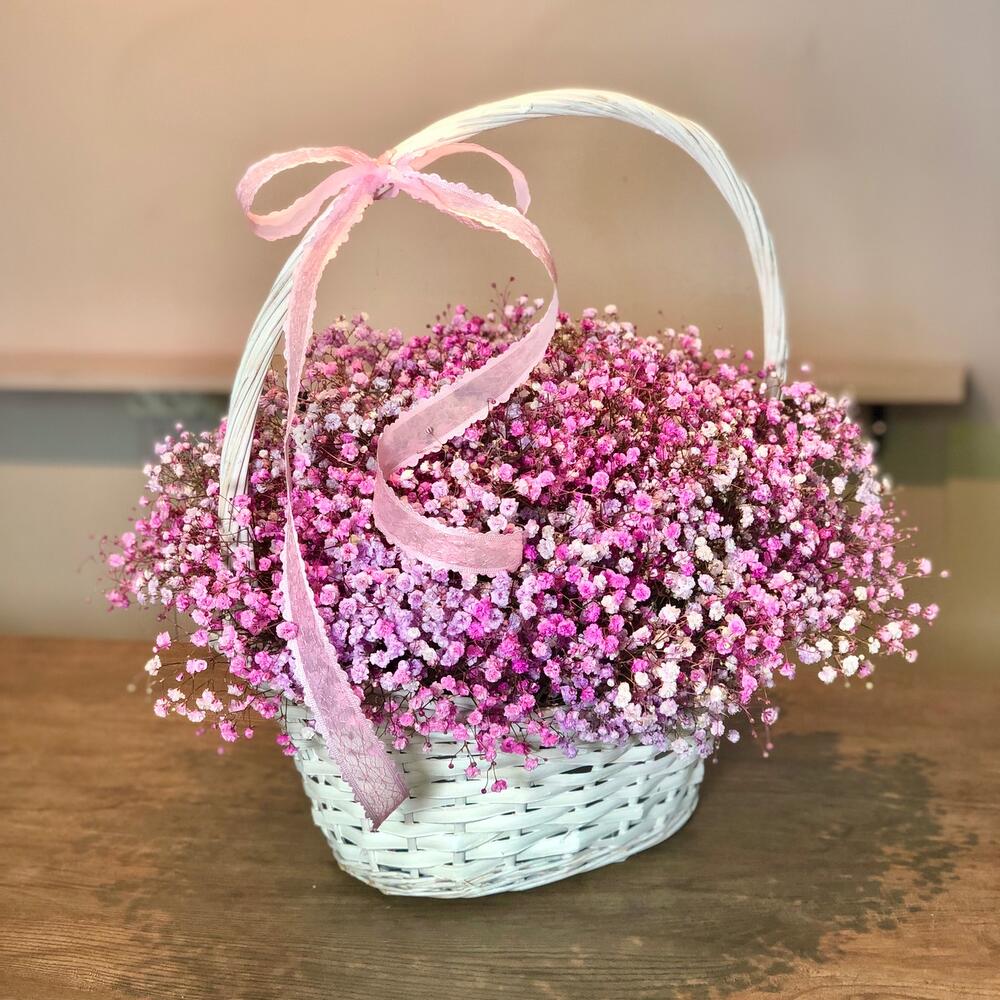 Корзина плетеная – 1 шт.Оазис флористический – 1 шт.Гипсофила – 21 шт.Лента – 1 шт.