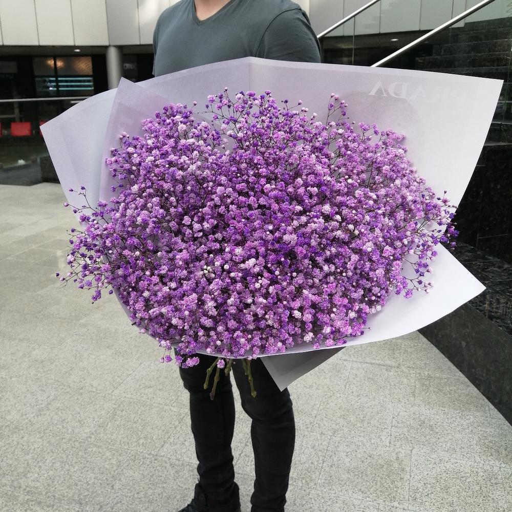 Гипсофила Мирабелла 95 г – 9 шт.Упаковка дизайнерская – 2 шт.Лента атласная – 2 шт.