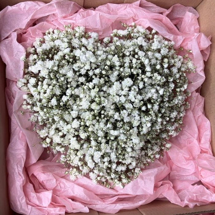 Гипсофила – 4 шт.Тишью – 1 шт.Коробка крафт – 1 шт.Оазис флористический – 1 шт.