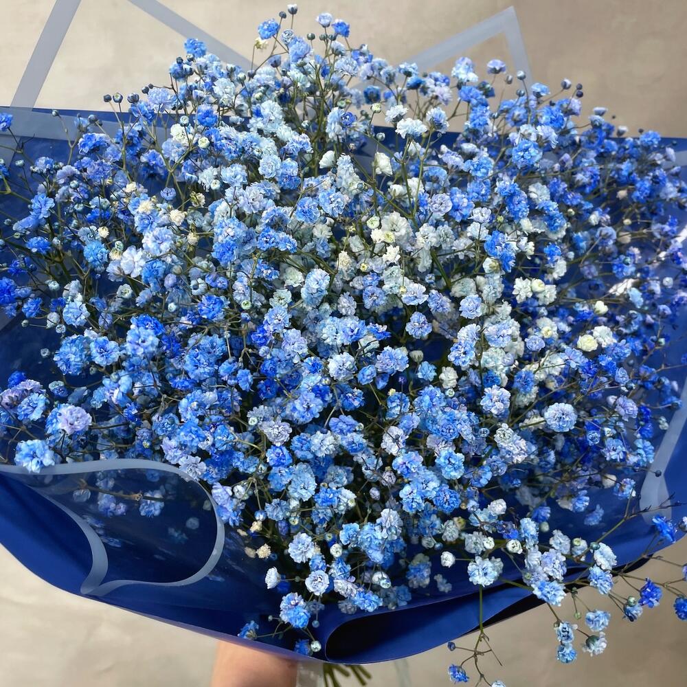 Гипсофила синяя – 7 шт.Упаковка дизайнерская – 2 шт.Лента – 1 шт.