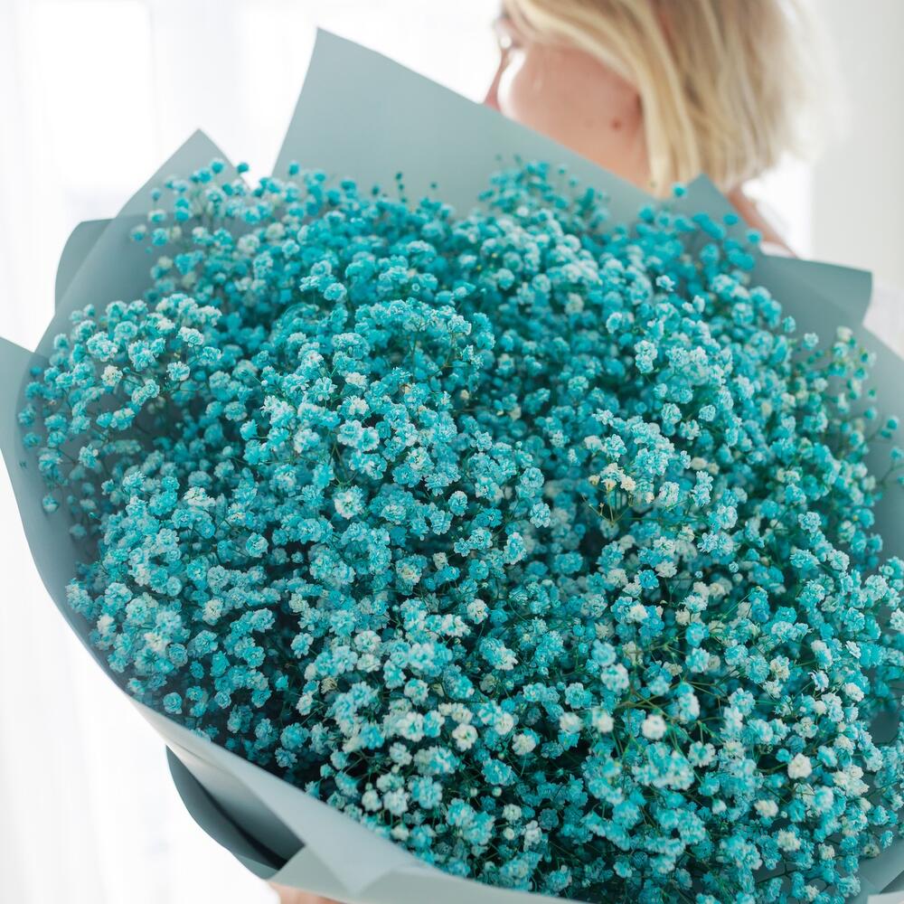 Лента атласная – 1 шт.Пленка корейская – 3 шт.гипсофила цветная – 17 шт.инструкция по уходу за цветами – 1 шт.