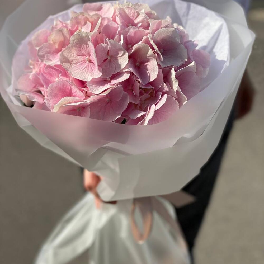 Розовая гортензия в элегантной упаковке
