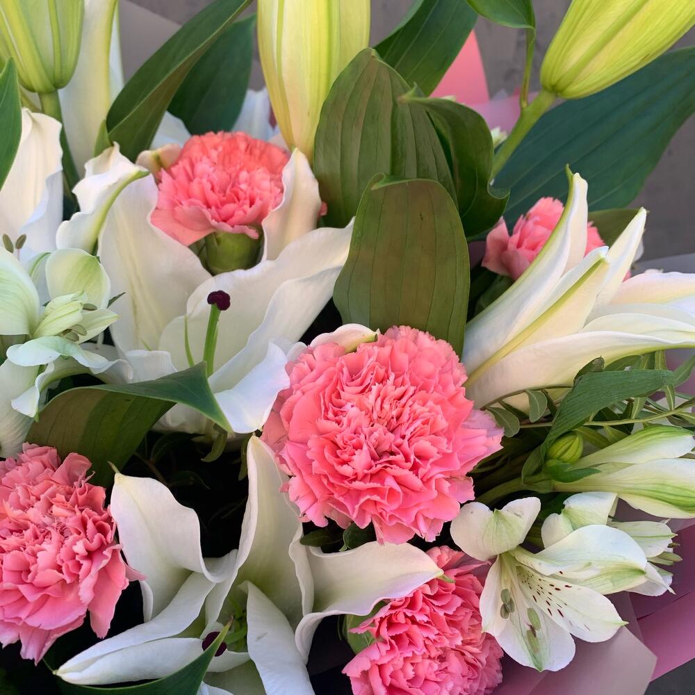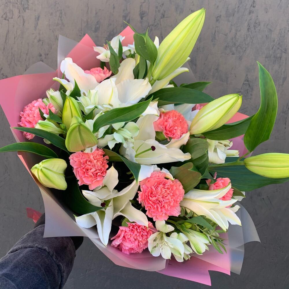 Букет из лилий, альстромерий и гвоздики «Лавиния»