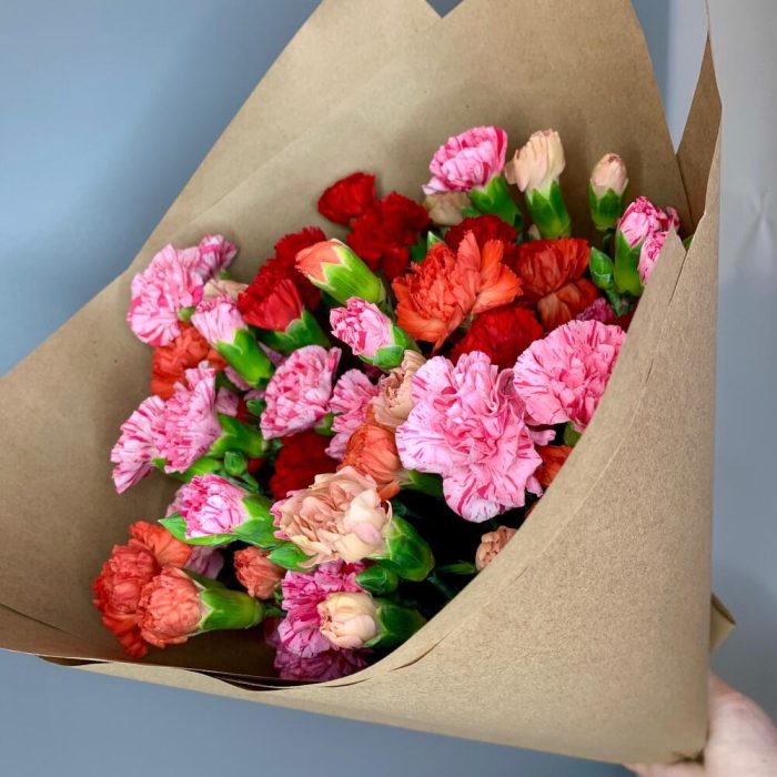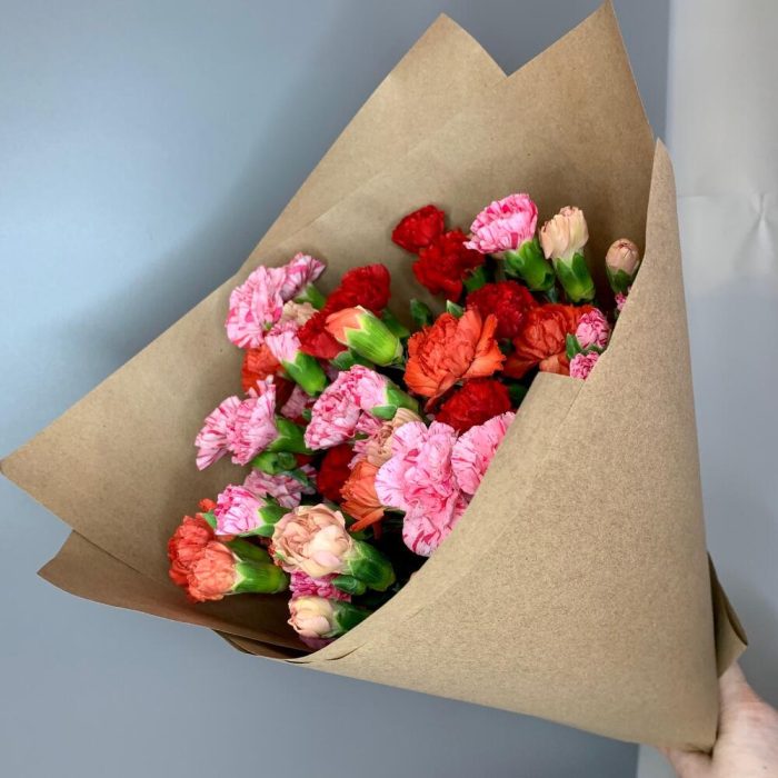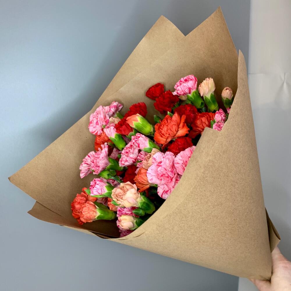 Лента атласная – 2 шт.Крафт – 2 шт.Диантус кустовой – 23 шт.