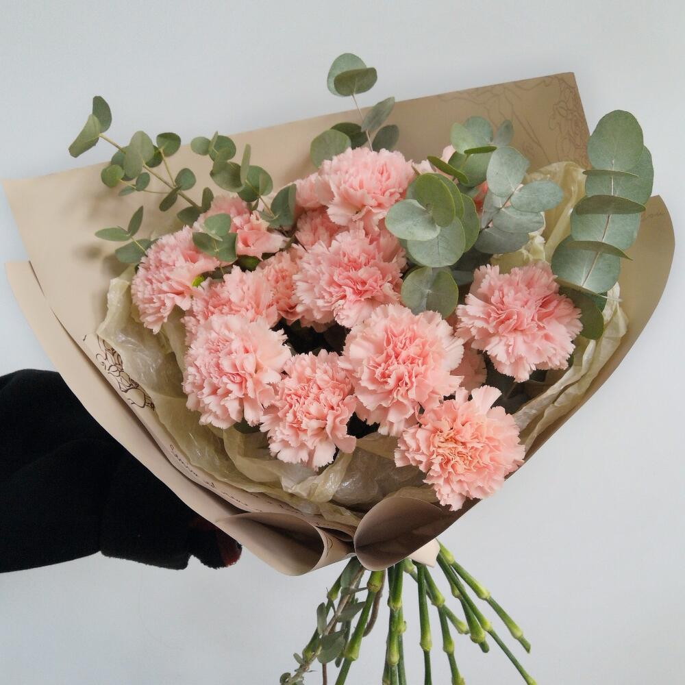 Диантус – 15 шт.Упаковка дизайнерская – 1 шт.Лента атласная – 1 шт.