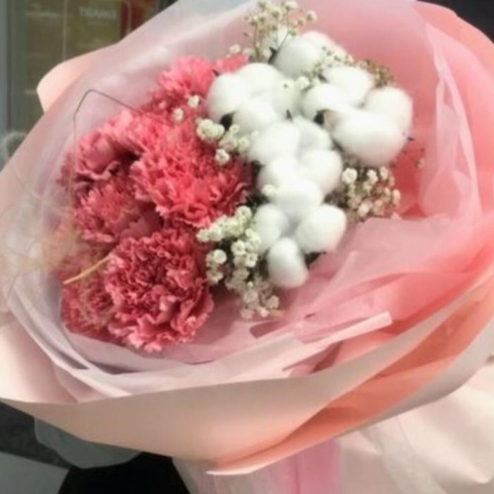 Нежный букет с гвоздикой и хлопком