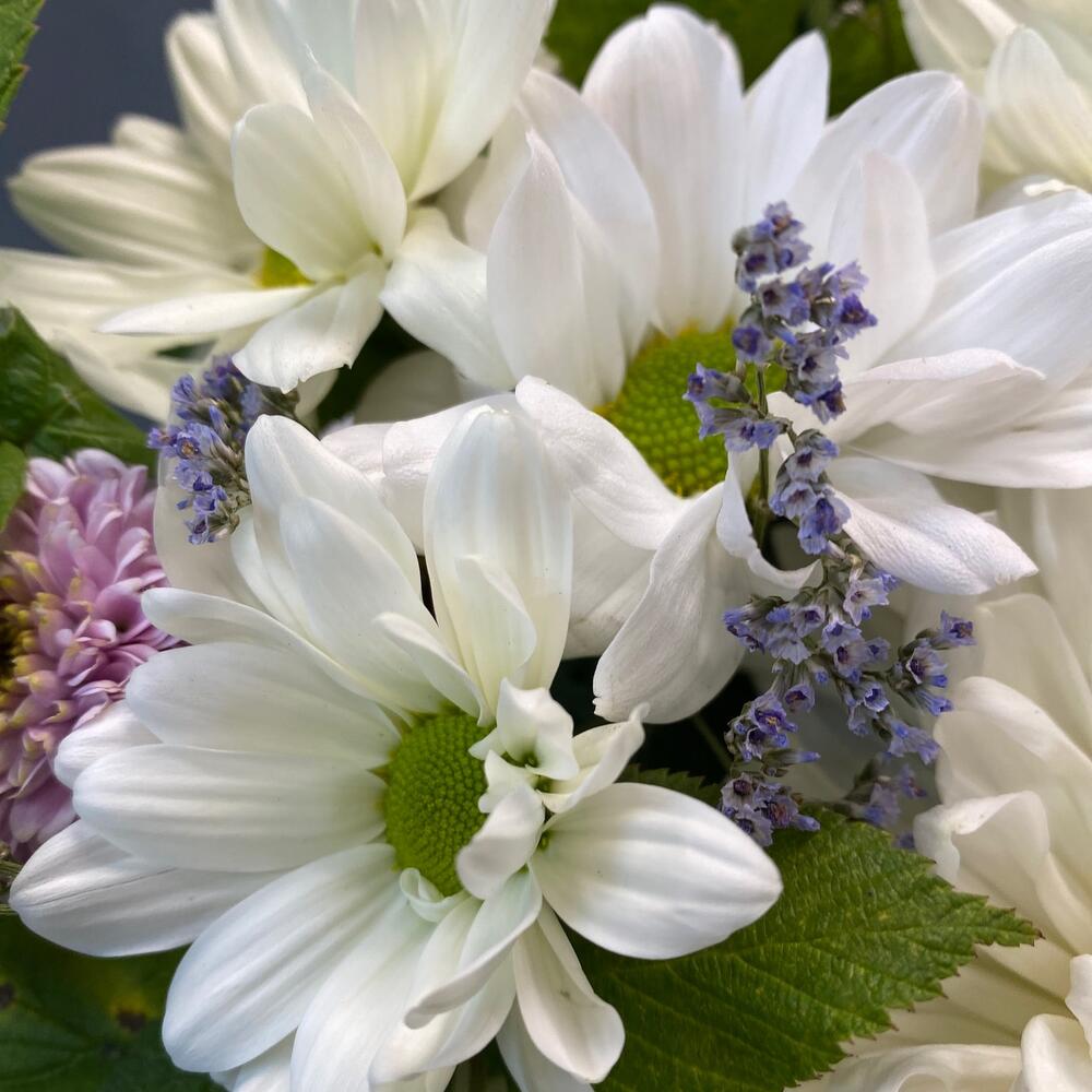 «Лавандовое созвездие» Букет из розы, гвоздики, статица и хлопка