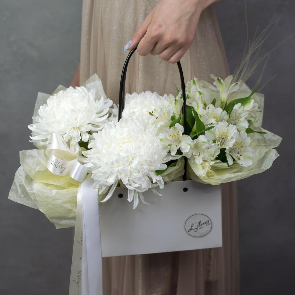 Хризантема Антонов – 3 шт.Альстромерия белая – 3 шт.