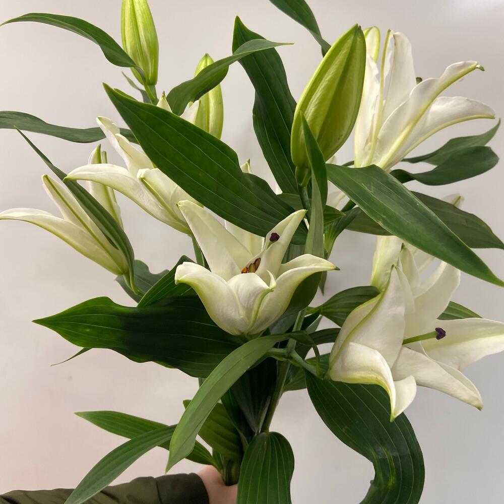 Лилия белая (голландия) – 3 шт.Атласная лента – 1 шт.Упаковка прозрачная – 1 шт.Игрушка – 1 шт.