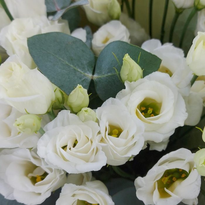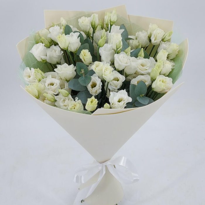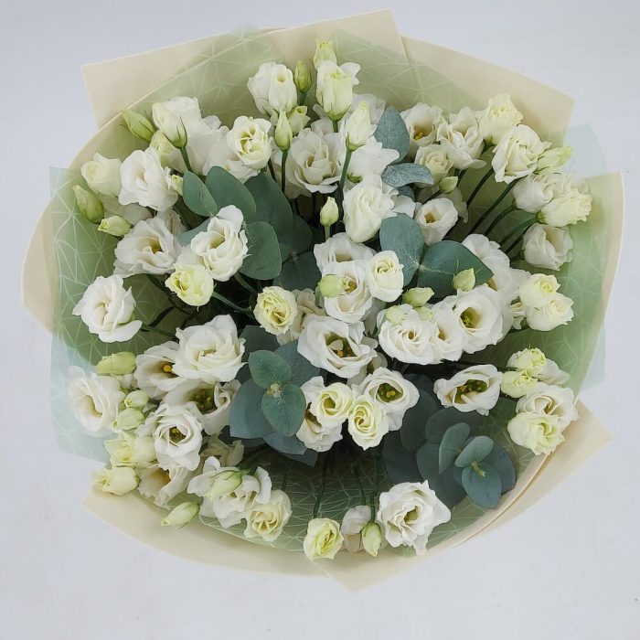 Белая эустома с эвкалиптом (9)