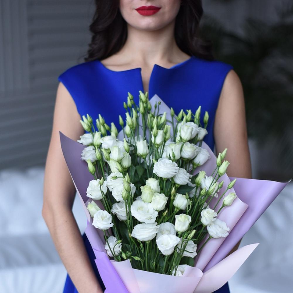 Лизиантус Алиса белый – 11 шт.Упаковка дизайнерская – 3 шт.Лента атласная – 1 шт.