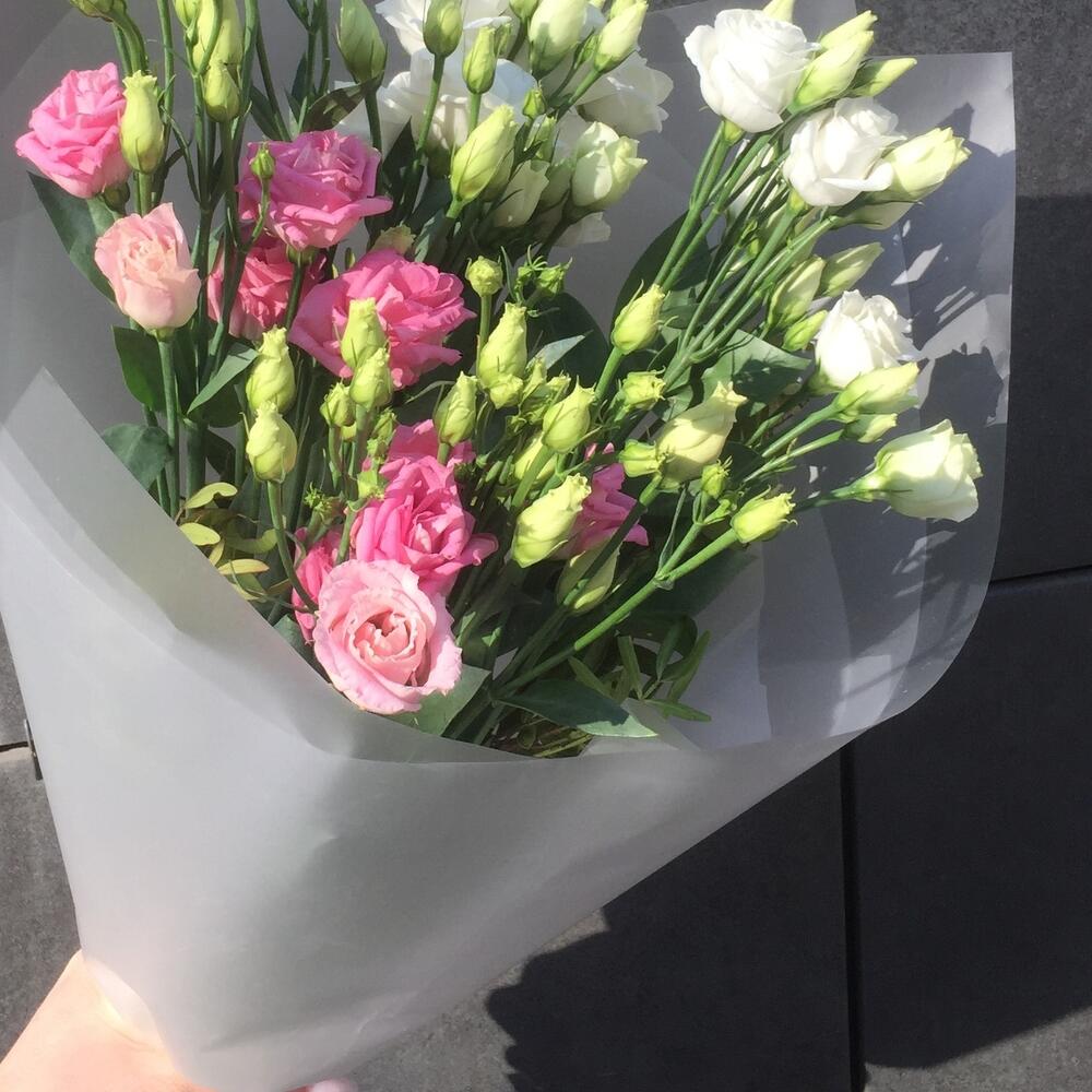 Моно букет с эустомой , лизиантусом