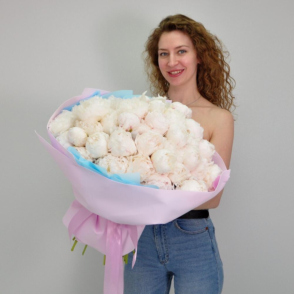 Лента атласная – 2 шт.Пион белый – 51 шт.Кризал (подкормка) – 1 шт.Пленка матовая – 3 шт.Аквапак – 1 шт.Фоамиран (упаковка) – 3 шт.инструкция по уходу за цветами – 1 шт.хорошее настроение в подарок – 1 шт.