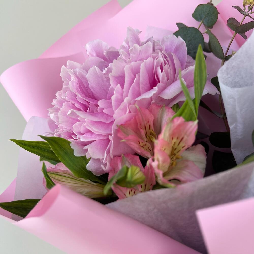 Букет «Иностранец» (пион, альстромерия, эвкалипт)