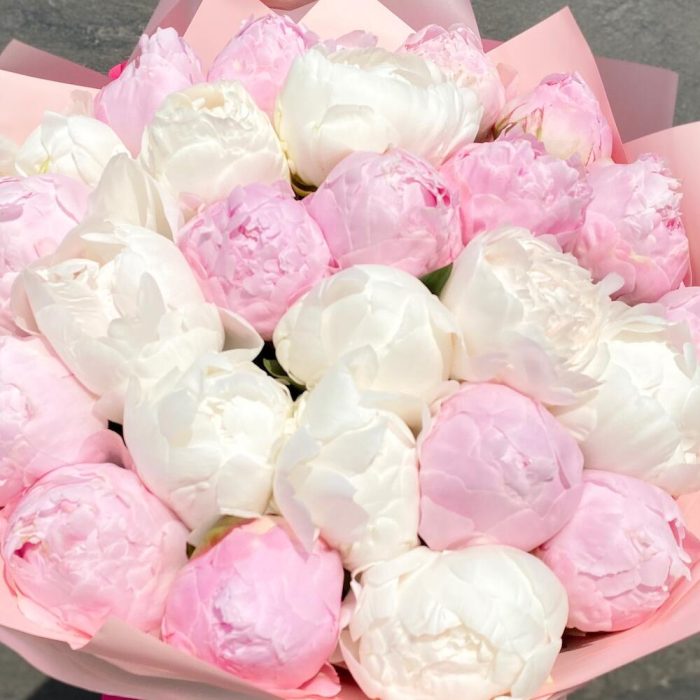 Букет премиум Сливочный пломбир с 25 пионами