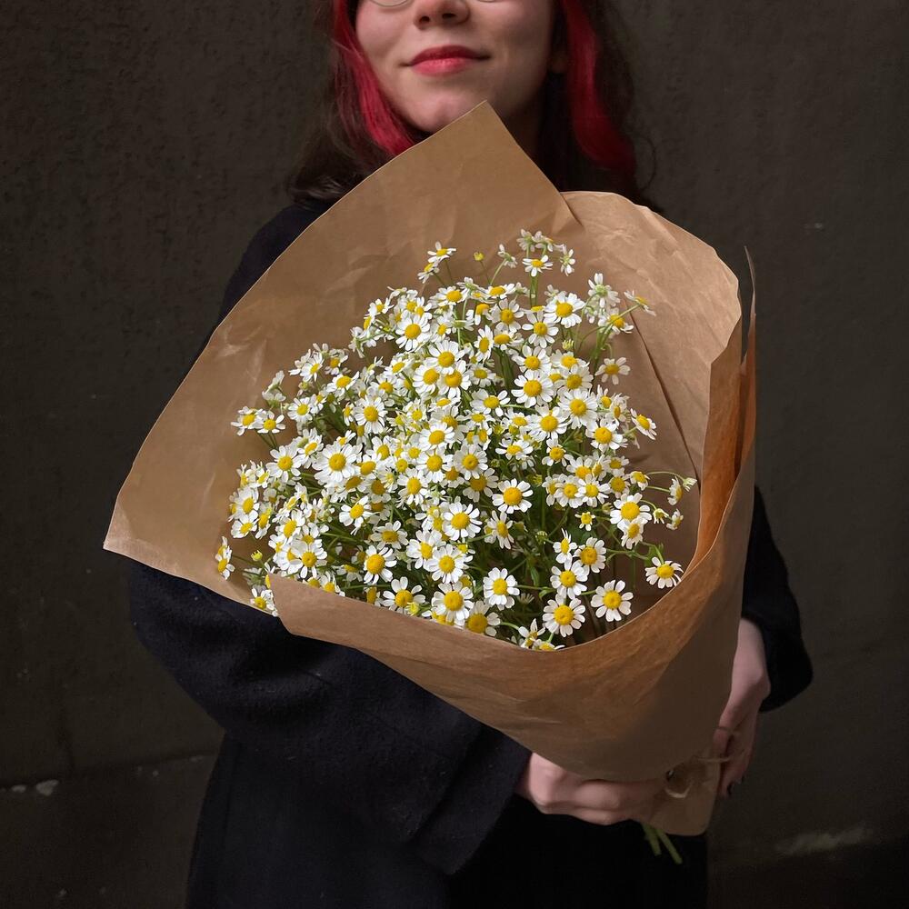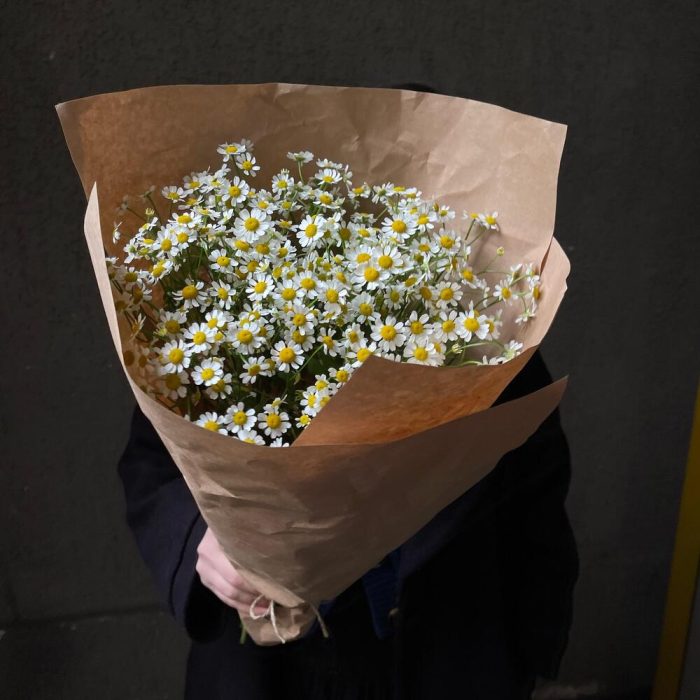 Букет 22: кустовые ромашки в жатом крафте