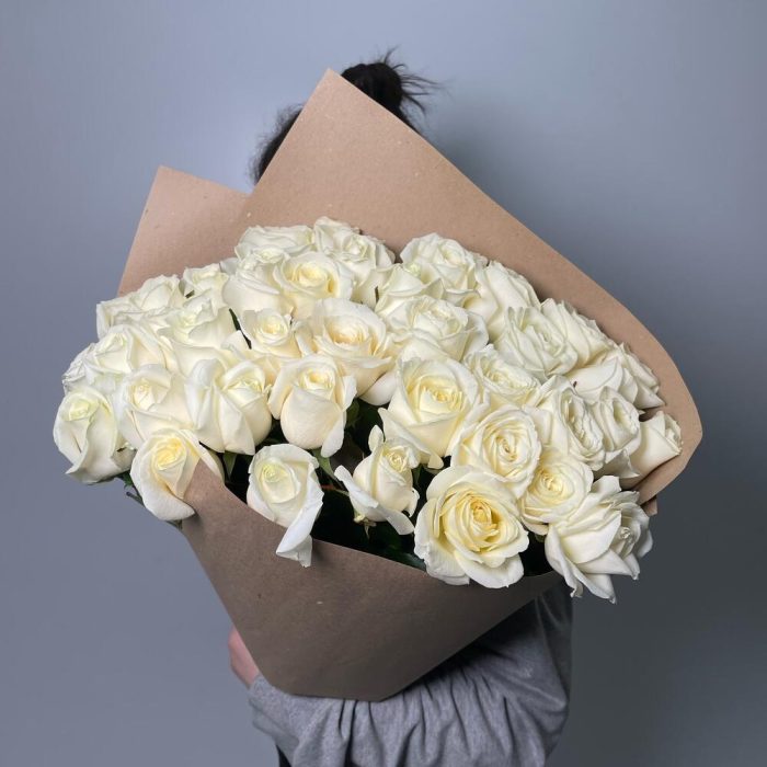 Крафт – 2 шт.Роза белая 50 см – 41 шт.витамины для цветов – 1 шт.