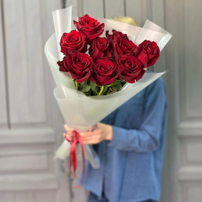 9 Красных роз 50 см