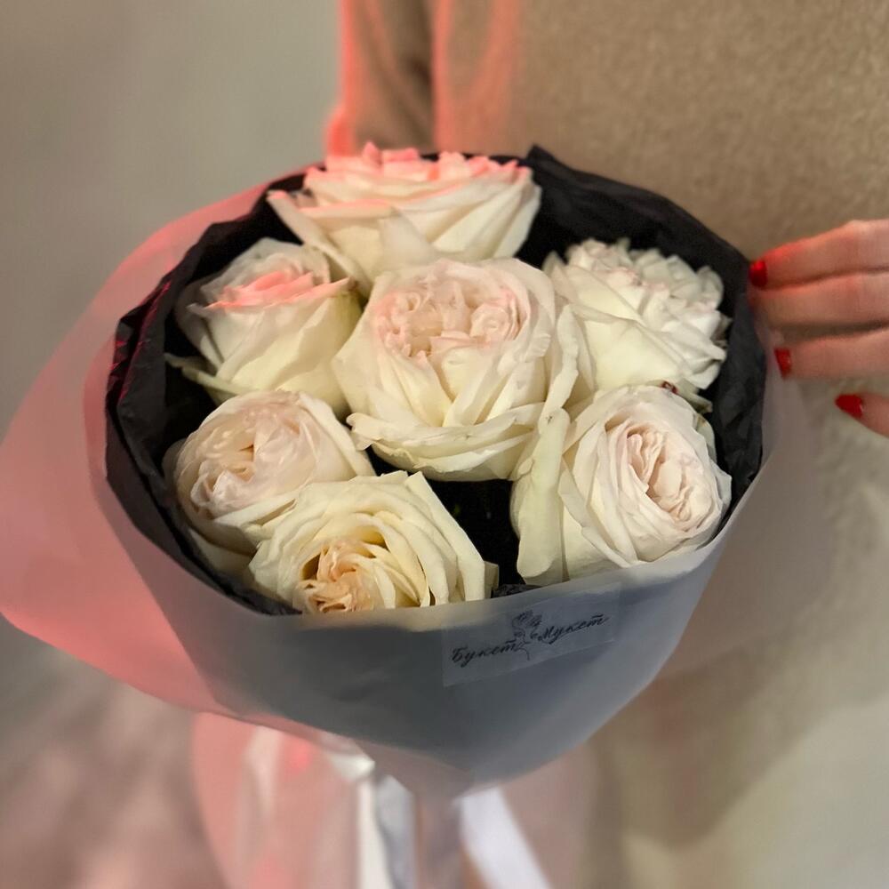 Лента – 3 шт.Тишью – 2 шт.Пленка матовая – 2 шт.роза охара пионовидная – 7 шт.