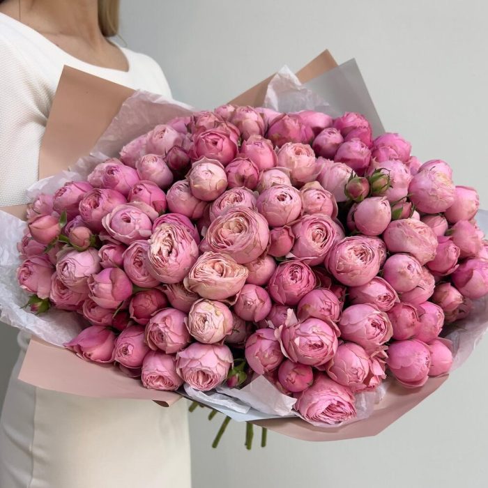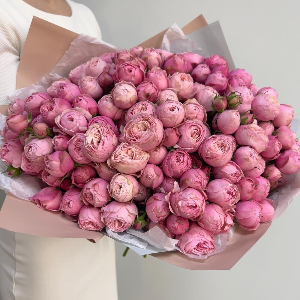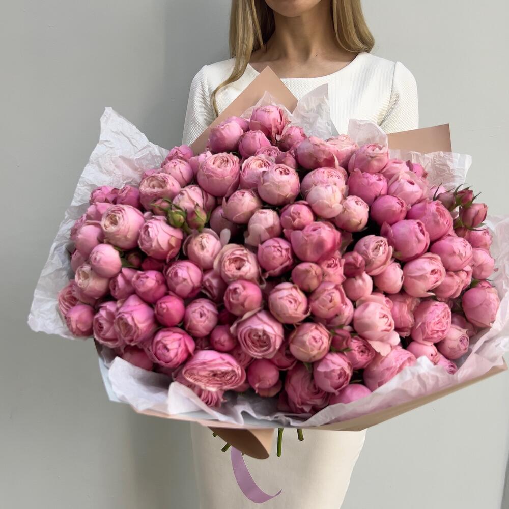 Упаковка дизайнерская – 4 шт.Пионовидная кустовая роза – 41 шт.Тишью белое – 4 шт.