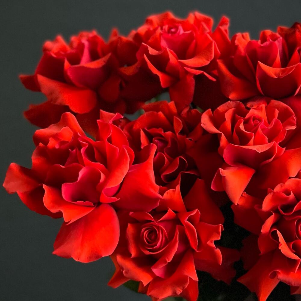 Букет из 11 сортовых,алых роз