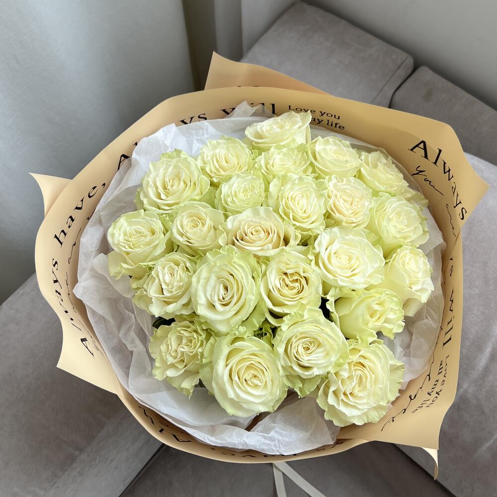 Роза Мондиаль – 23 шт.Тишью белое – 1 шт.пленка матовая дизайнерская – 1 шт.