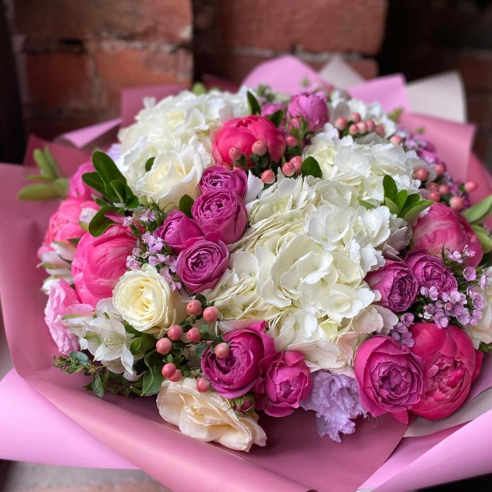 Категорий: Альстромерии, Гвоздики, Гортензии, Лизиантусы, Пионовидные розы, Розы