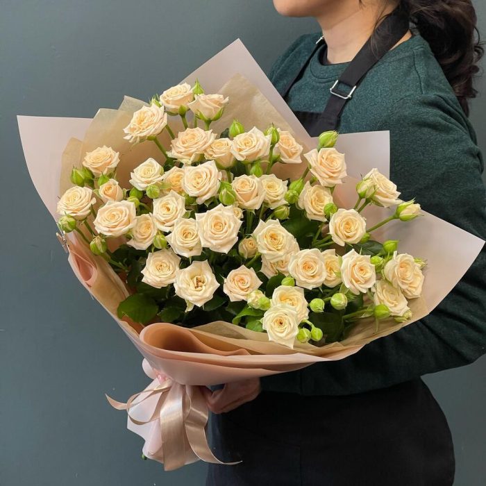 Букет из кремовых кустовых роз “Тоффи”