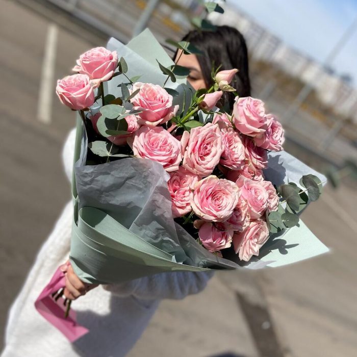 Кустовые розы, Лизиантусы, Розы, Сухоцвет