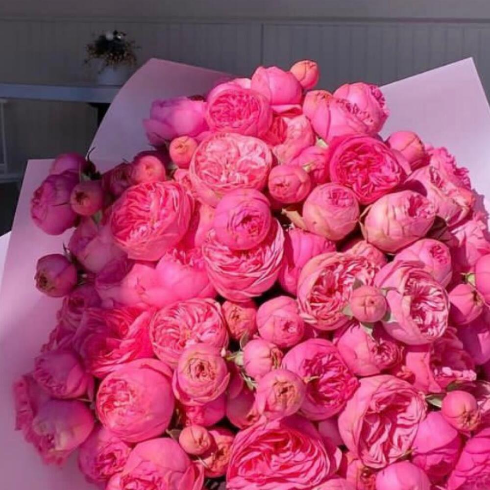 Роза пионовидная – 20 шт.Роза кустовая пионовидная – 25 шт.Упаковка дизайнерская – 2 шт.Лента атласная – 2 шт.Открыточка с вашими пожеланиями – 1 шт.хорошее настроение – 100 шт.инструкция по уходу за цветами – 1 шт.коробка переноска – 1 шт.Кризал – 1 шт.