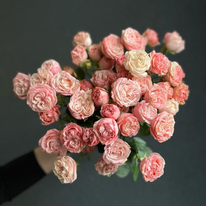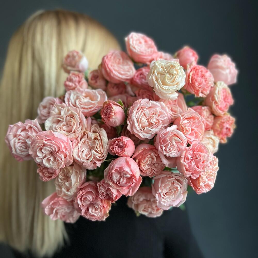 роз кустовая пионовидная – 13 шт.Лента атласная – 1 шт.