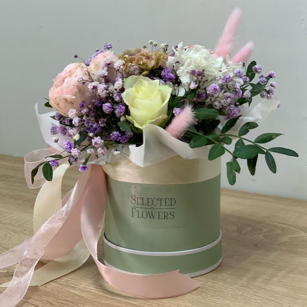 “Эвкалиптическая роскошь” гортензия и пионовидная кустовая роза