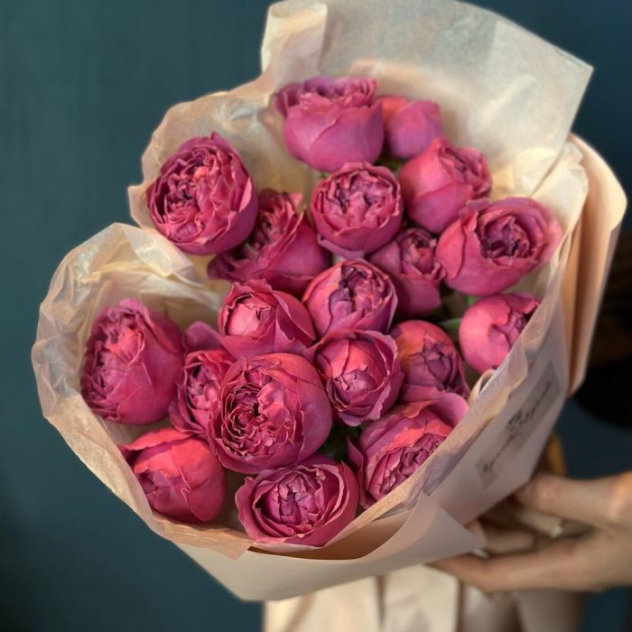 Лента атласная – 1 шт.Тишью – 1 шт.Пионовидная кустовая роза – 7 шт.Пленка матовая – 1 шт.