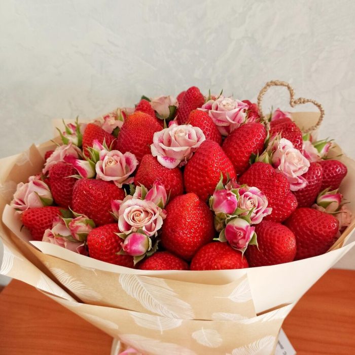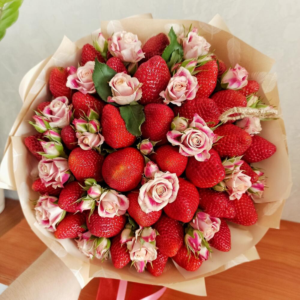 Роза кустовая розовая – 3 шт.клубника крупная отборная – 800 гр.