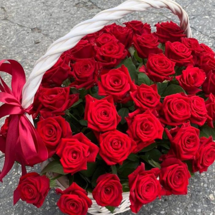 Метки: 51 роза, от 5000 руб, цветы в корзине