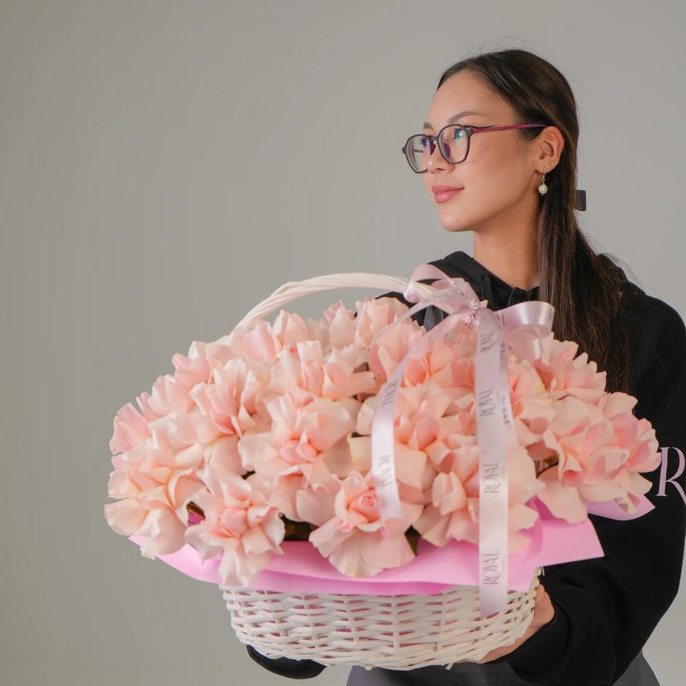 Гвоздики, Кустовые розы, Пионовидные розы, Розы