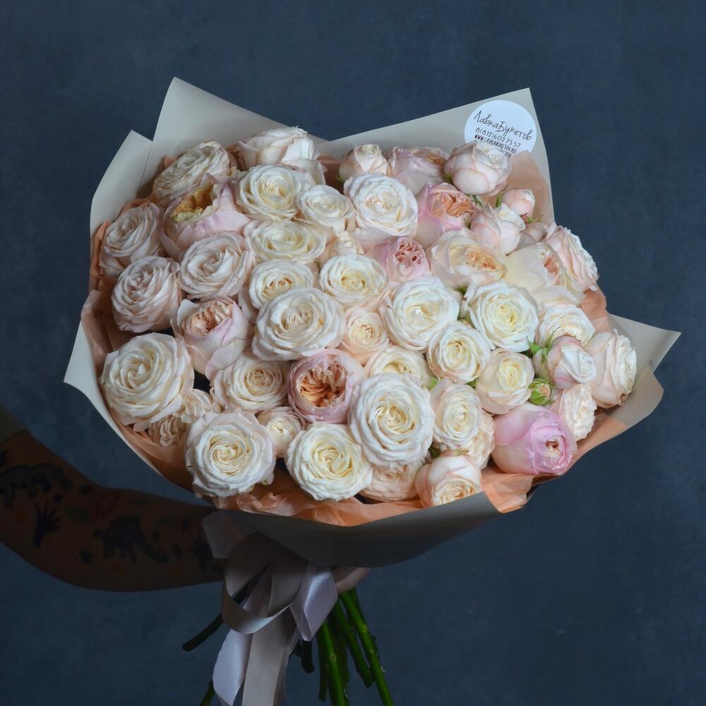 Пионовидная роза бомбастик – 10 шт.Пионовидная роза джульетта – 9 шт.