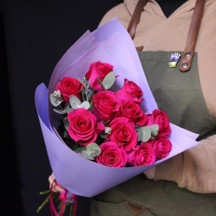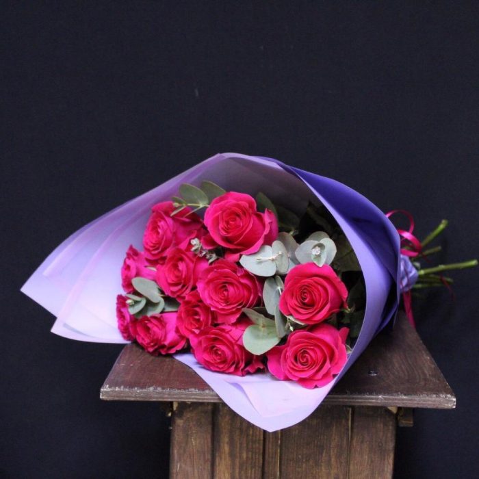 mono bouquet 69 из 11 роз сорта pink floyd с эвкалиптом
