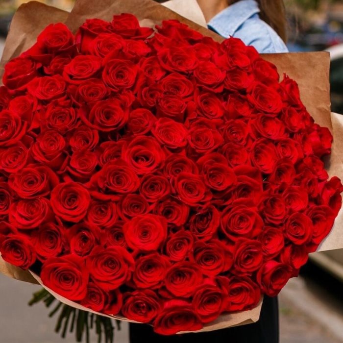 Роза Эквадор – 201 шт.Упаковка дизайнерская – 5 шт.Лента атласная – 3 шт.