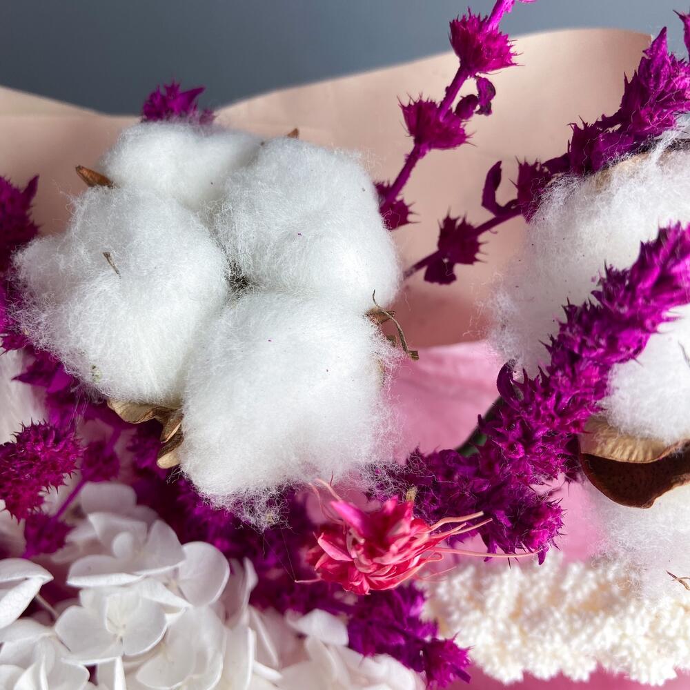 Букет из сухоцветов в лавандовых оттенках с хлопком