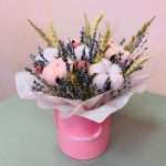 «Лавандовое созвездие» Букет из розы, гвоздики, статица и хлопка